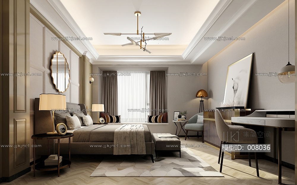 37-1020现代卧室 3d模型下载 [模型ID:8036]