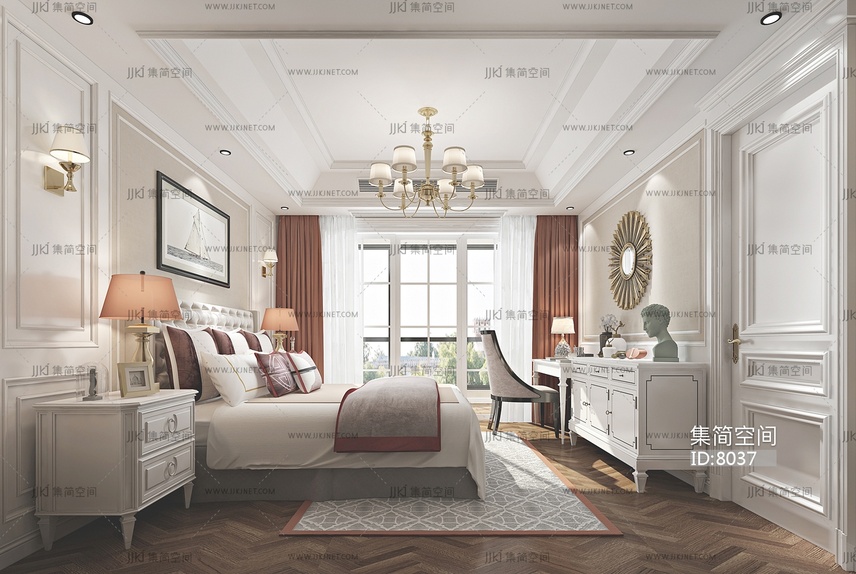 50-1021欧式卧室 3d模型下载 [模型ID:8037]
