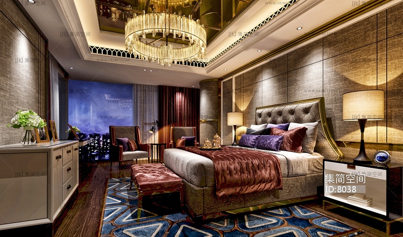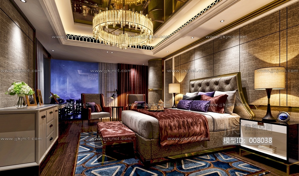 69-1021新古典卧室 3d模型下载 [模型ID:8038]