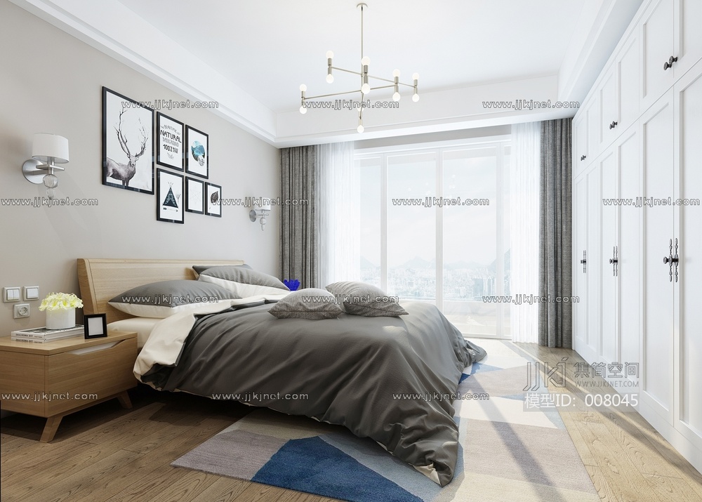 90-1021现代卧室 3d模型下载 [模型ID:8045]