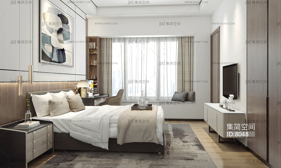 96-1021现代卧室 3d模型下载 [模型ID:8048]