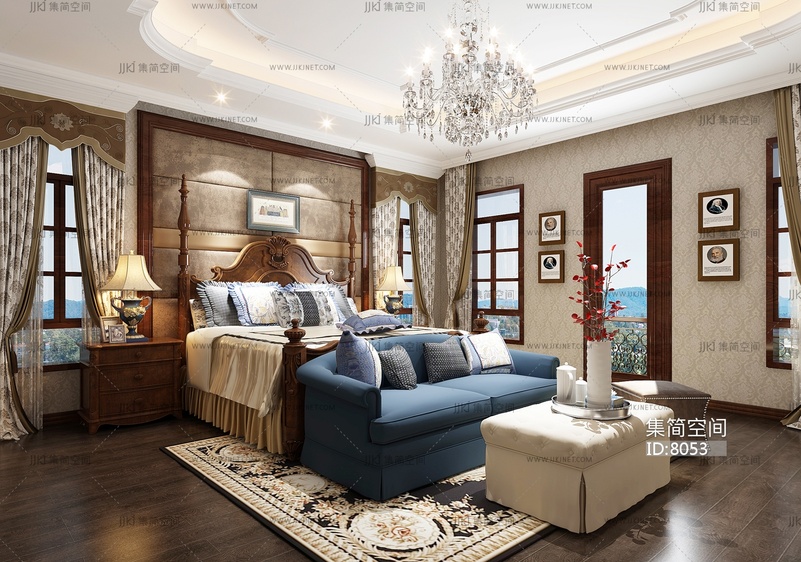 189-1021美式卧室 3d模型下载 [模型ID:8053]