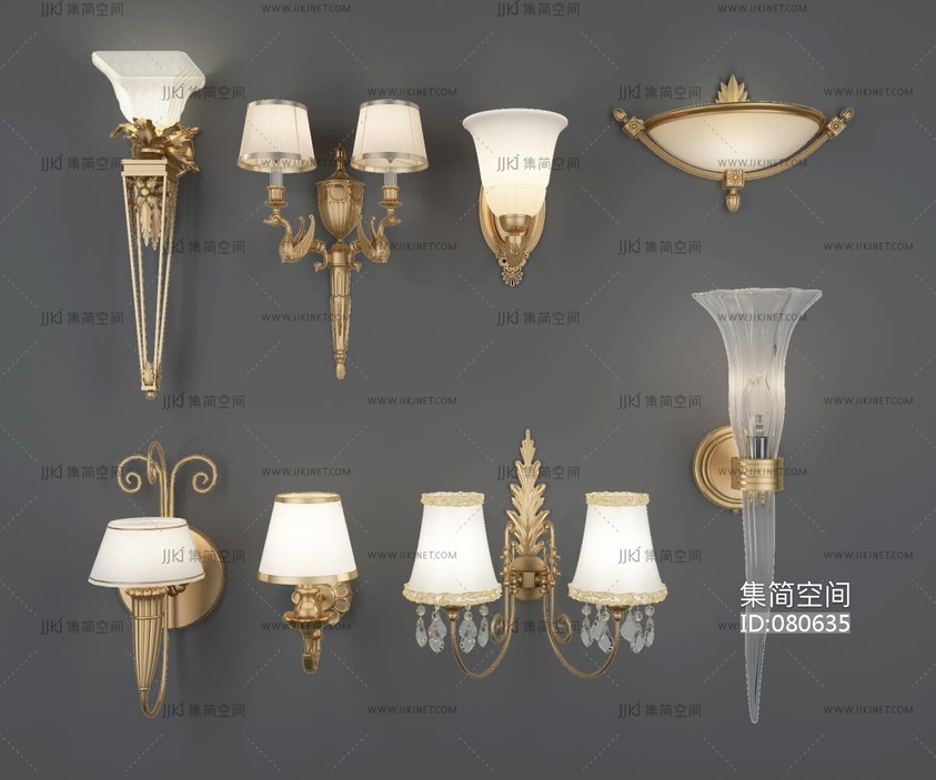 欧式古典金属玻璃壁灯3D模型3d模型下载