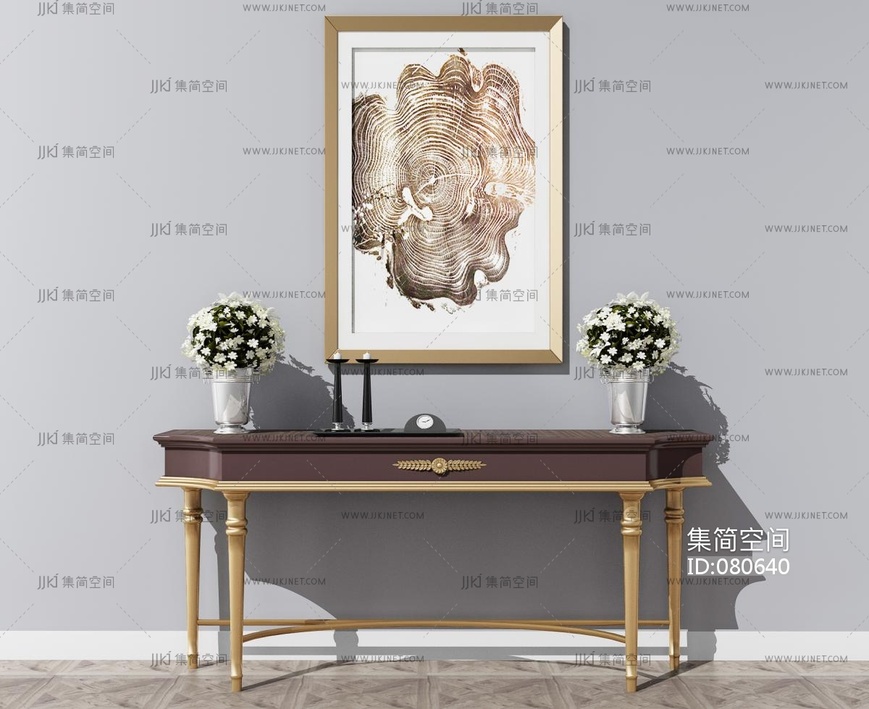 美式法式玄关柜,摆台,条案花瓶 3d模型下载 [模型ID:80640]