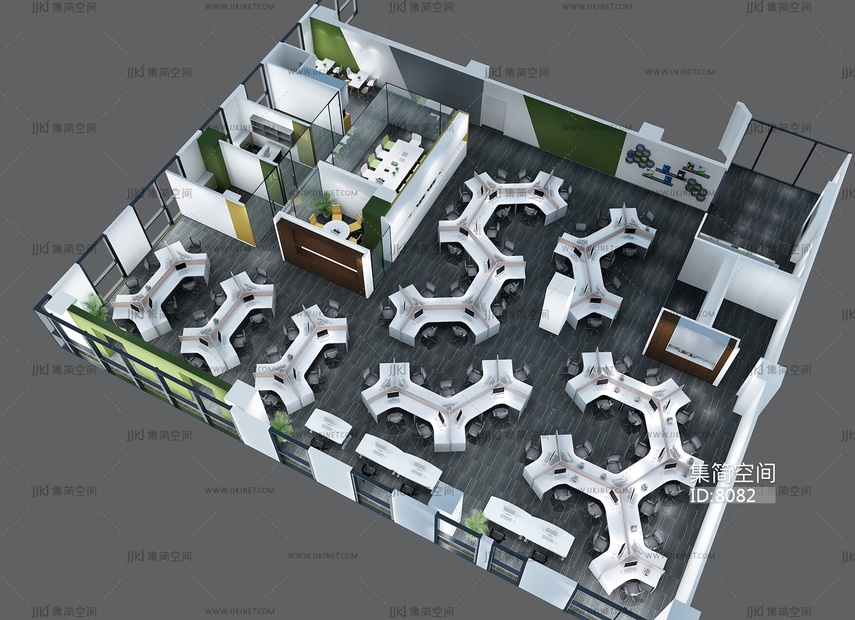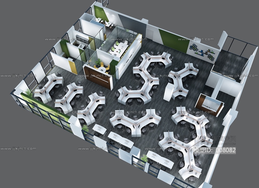 074-1022现代开敞办公 3d模型下载 [模型ID:8082]