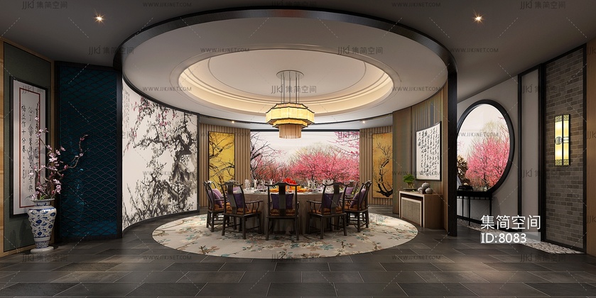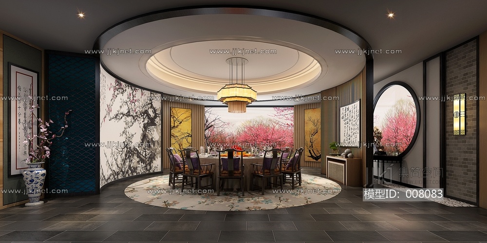 112-1022中式餐厅包房 3d模型下载 [模型ID:8083]