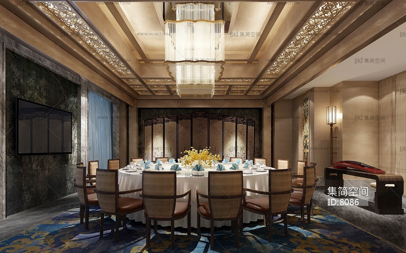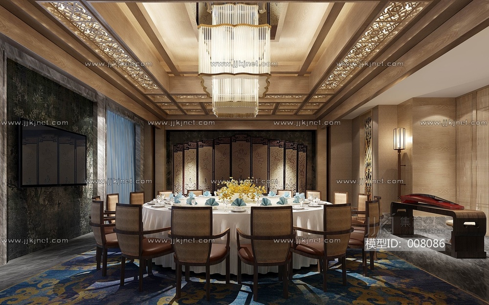113-1022中式餐厅包房 3d模型下载 [模型ID:8086]