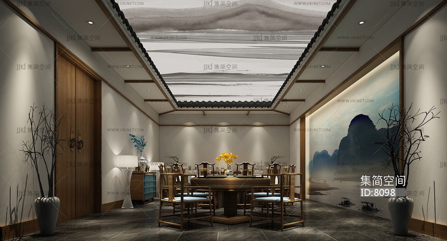 125-1022中式餐厅包房 3d模型下载 [模型ID:8098]