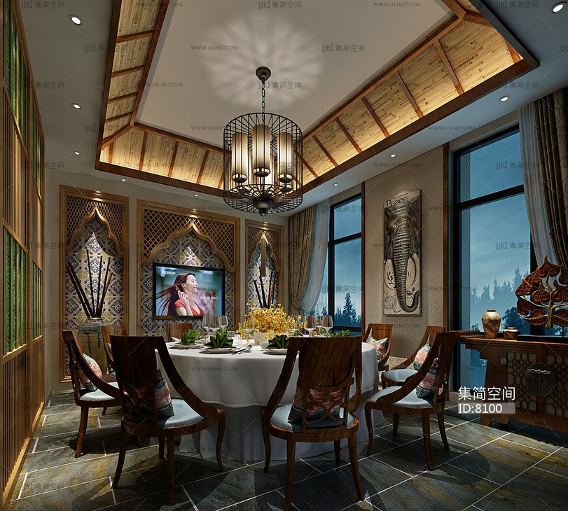 130-1022中式餐厅包房 3d模型下载 [模型ID:8100]