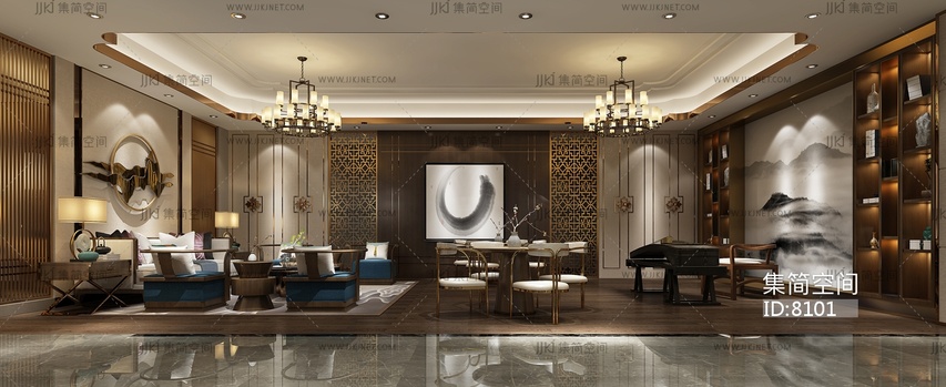 新中式酒店包厢,包间3d模型下载