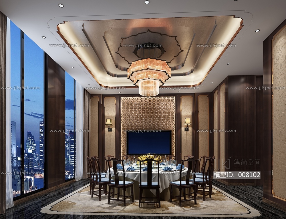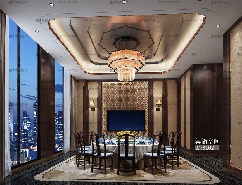 127-1022中式餐厅包房 3d模型下载 [模型ID:8102]