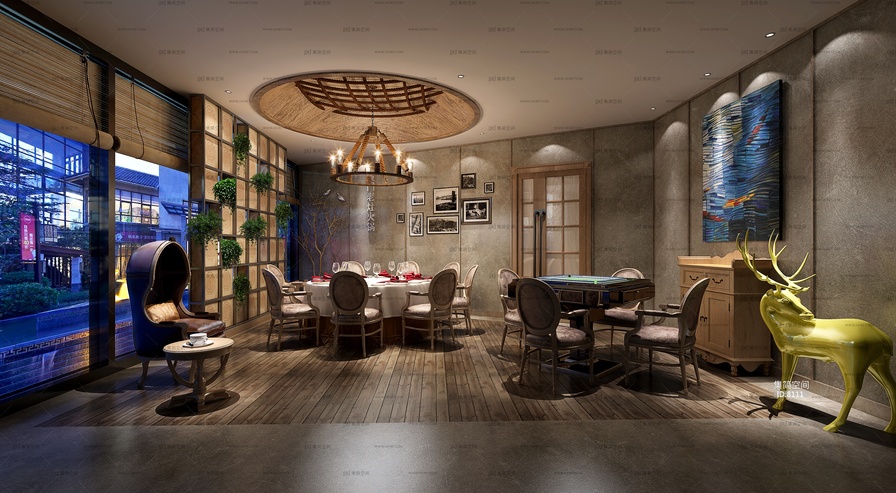 新中式餐厅包厢 包间3d模型 3d模型下载