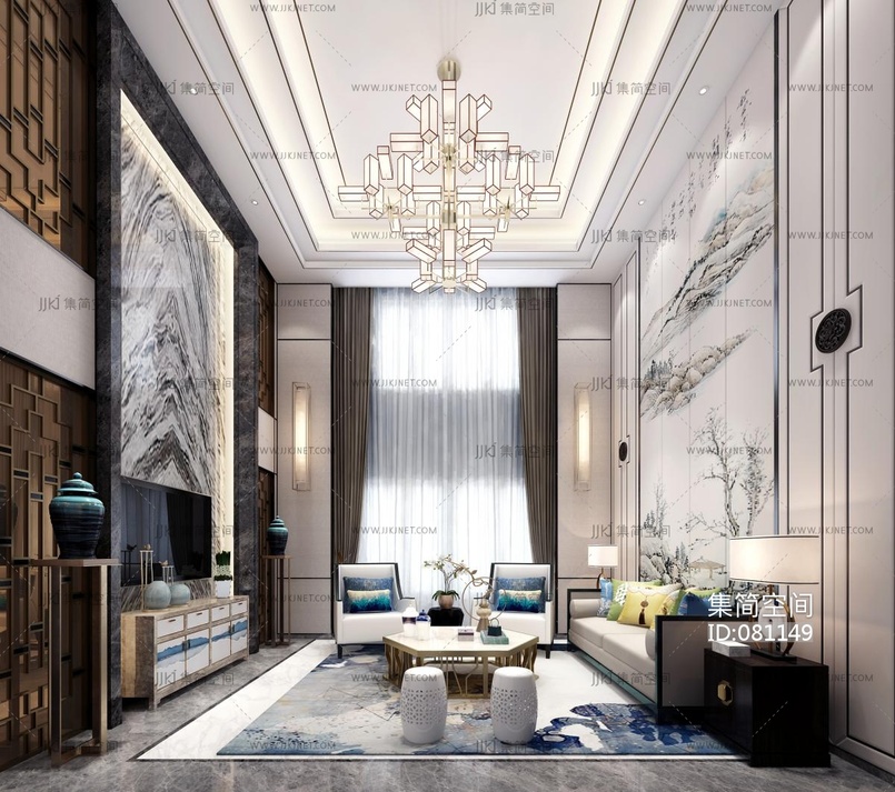 新中式别墅客厅,沙发茶几 3d模型下载 [模型ID:81149]