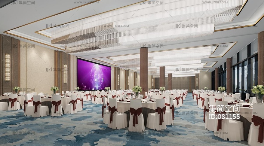 新中式现代酒店宴会厅,宴会桌椅 3d模型下载 [模型ID:81155]