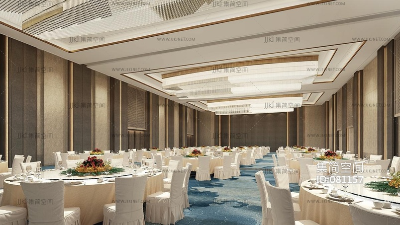 新中式酒店宴会厅,多功能厅 3d模型下载 [模型ID:81157]