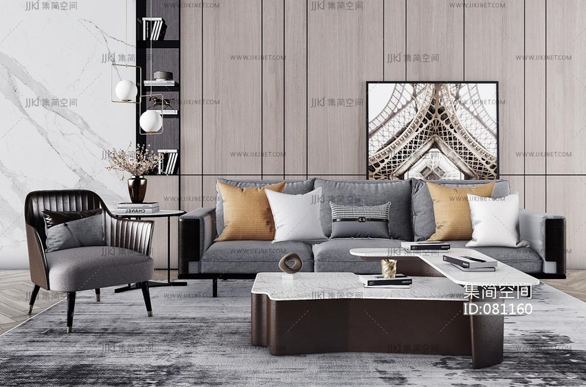 现代沙发茶几,单人椅子 3d模型下载 [模型ID:81160]