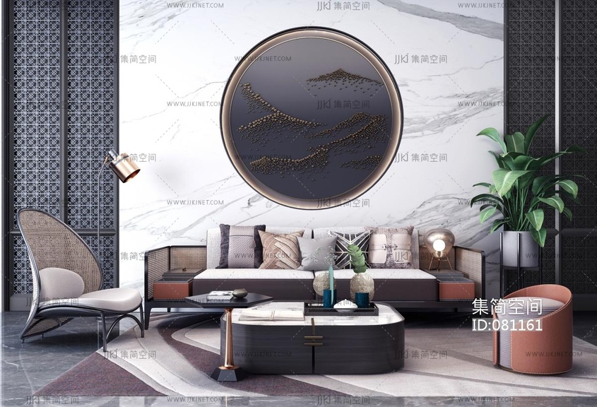 新中式客厅沙发茶几,单人沙发椅子,茶几坐蹲 3d模型下载 [模型ID:81161]