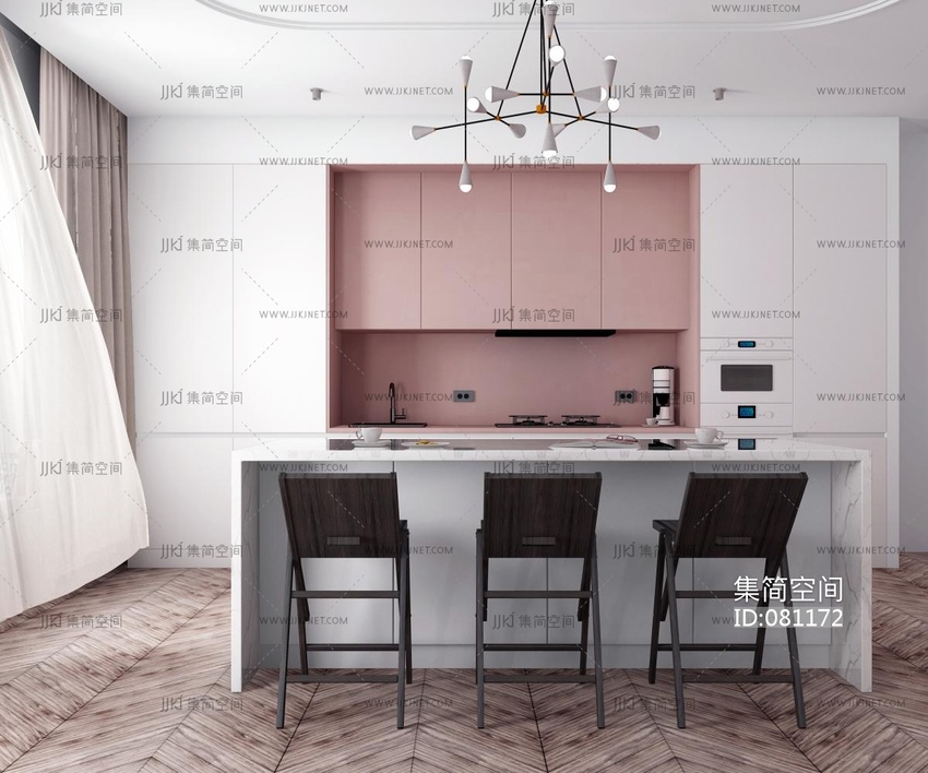北欧现代开放开敞式厨房,吧台,岛台 3d模型下载 [模型ID:81172]