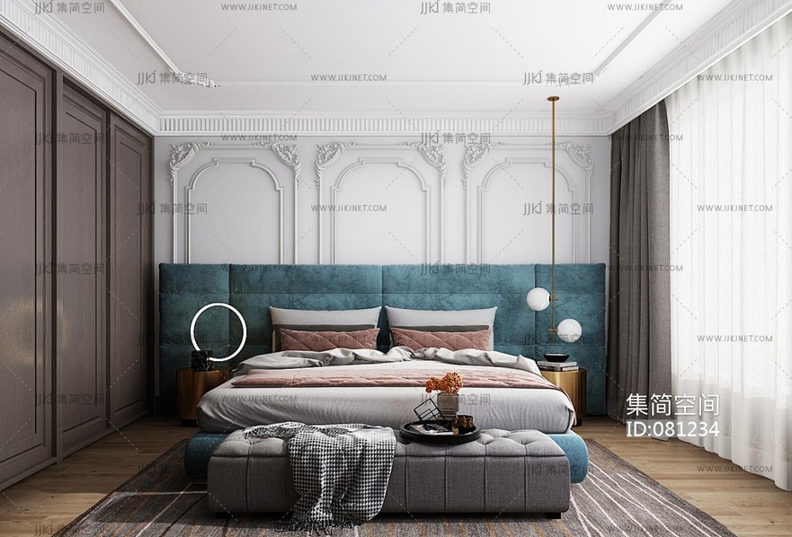 现代轻奢欧式法式卧室, 3d模型下载 [模型ID:81234]