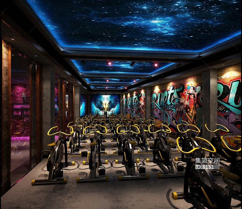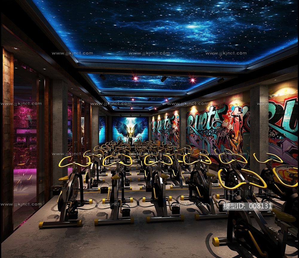 现代动感单车健身房3d模型下载