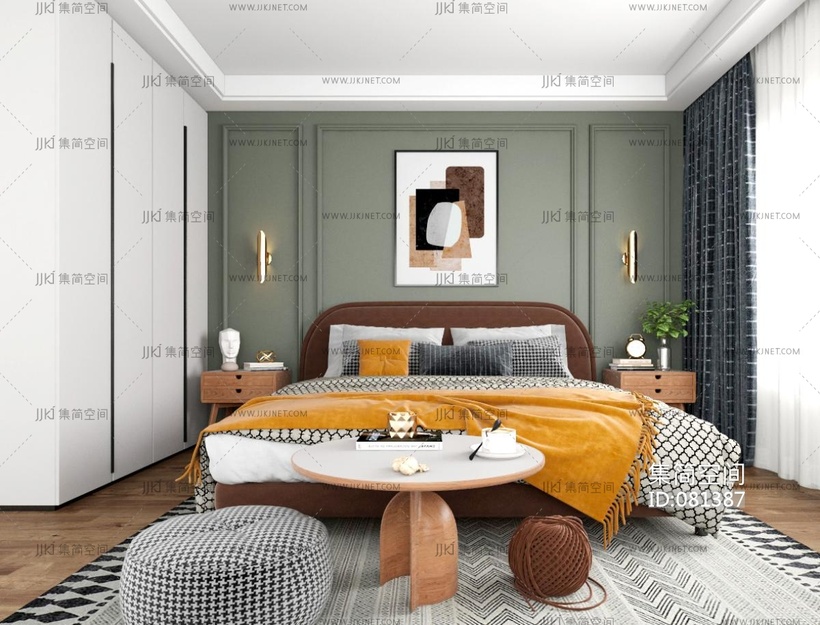 2北欧现代卧室 3d模型下载 [模型ID:81387]