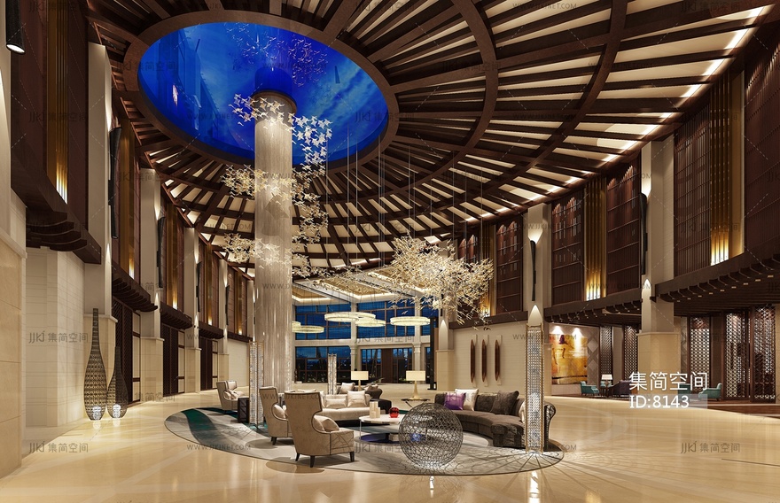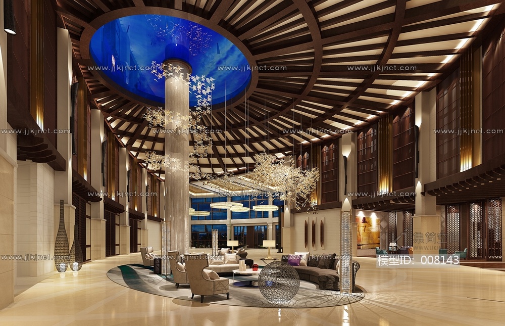 167-1022中式酒店大堂大型水晶吊灯 3d模型下载 [模型ID:8143]