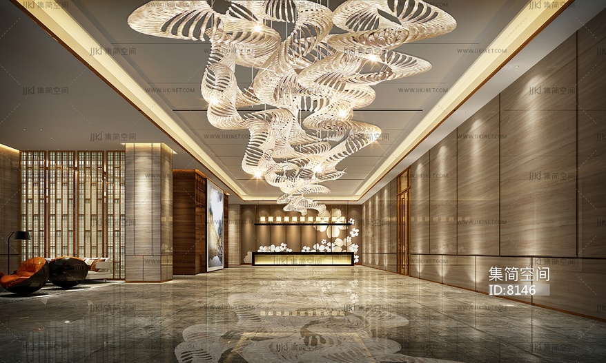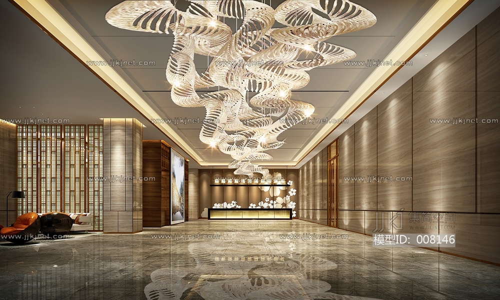 170-1022中式酒店大堂 3d模型下载 [模型ID:8146]