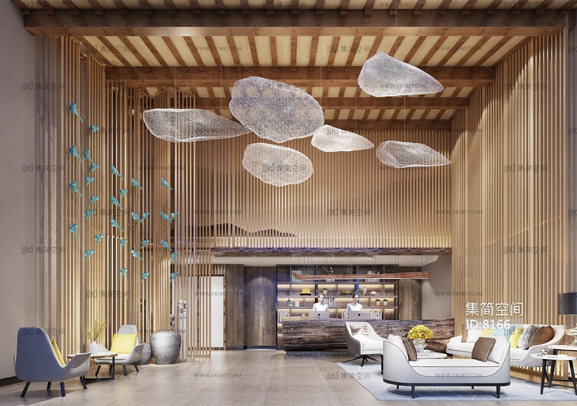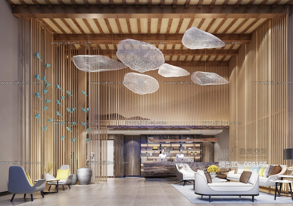 186-1022中式酒店大堂 3d模型下载 [模型ID:8166]