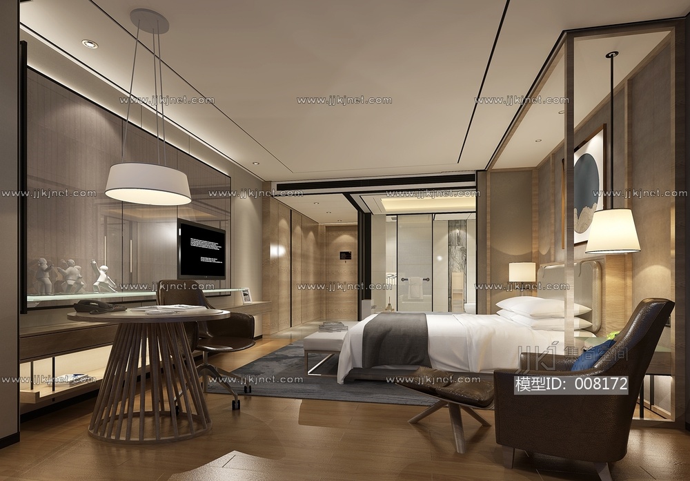 150-1022新中式客房 3d模型下载 [模型ID:8172]