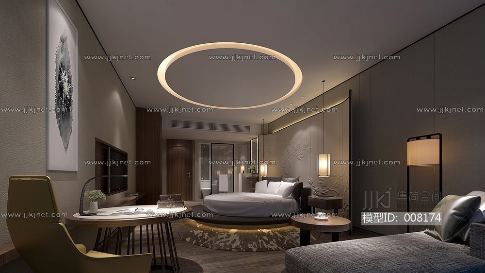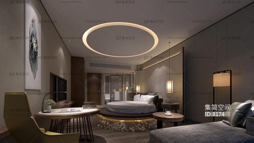 152-1022新中式客房圆床 3d模型下载 [模型ID:8174]