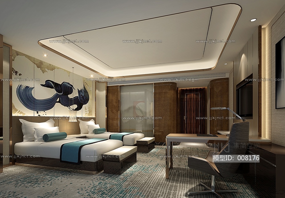 162-1022新中式客房 3d模型下载 [模型ID:8176]