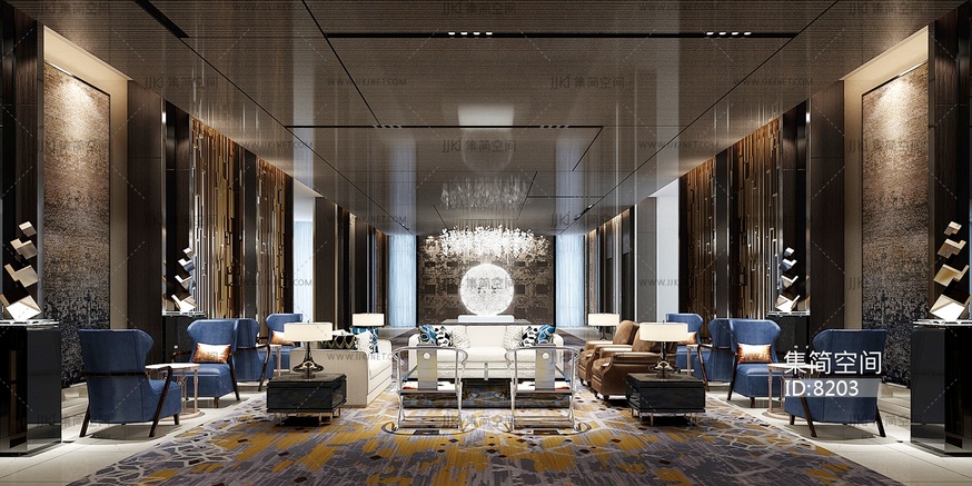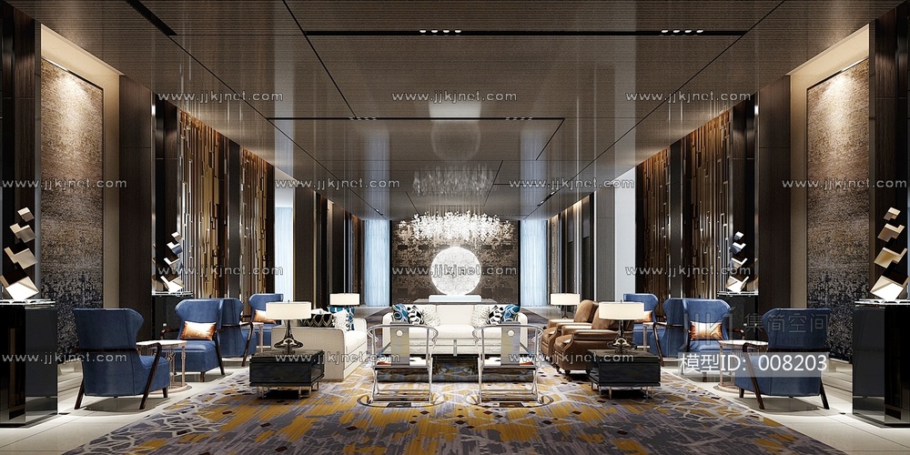 065-1022新中式售楼处会客洽谈区 3d模型下载 [模型ID:8203]