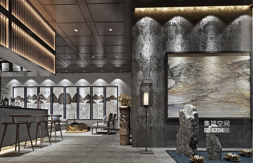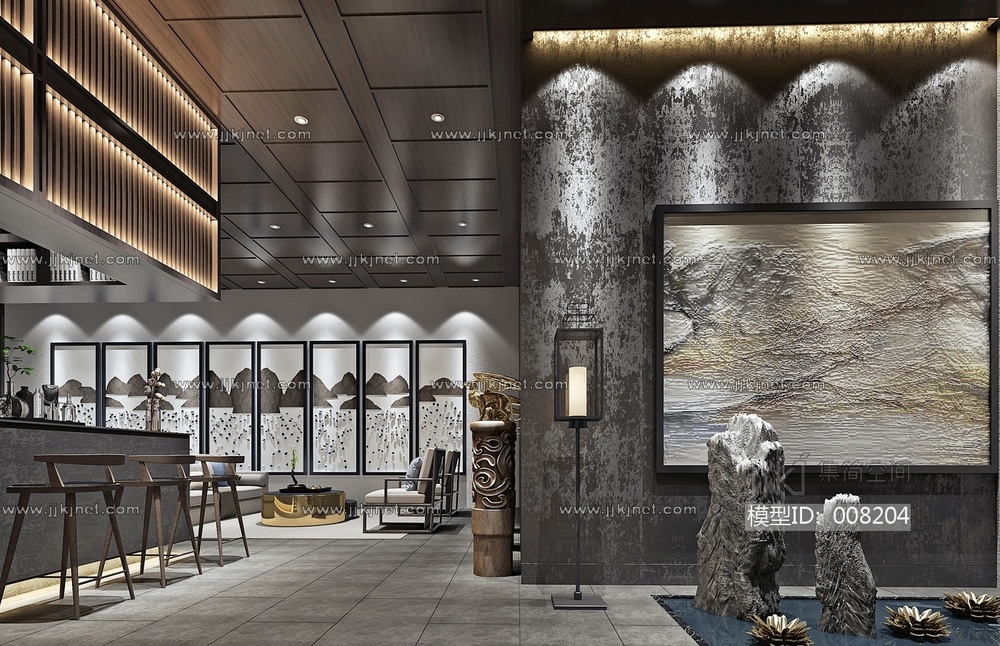 067-1022新中式水吧台挂画石头 3d模型下载 [模型ID:8204]