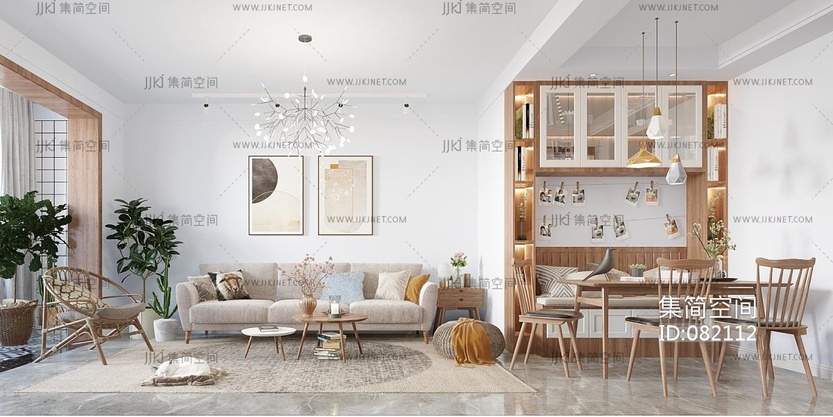 现代客厅餐厅,沙发茶几,餐桌椅酒柜,户外藤编休息椅子 3d模型下载 [模型ID:82112]