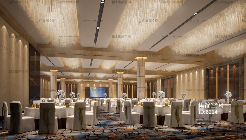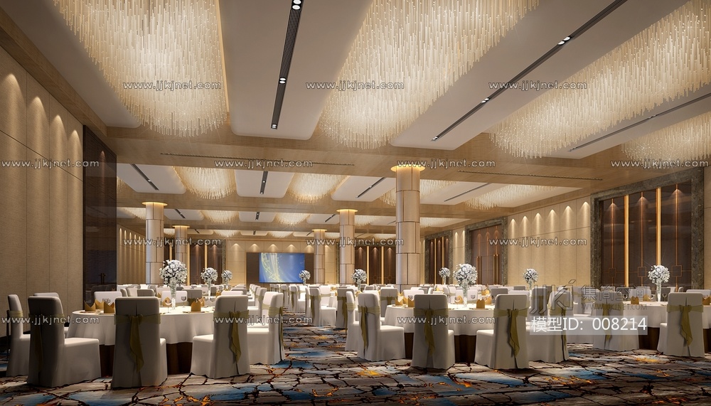 107-1022中式宴会厅 3d模型下载 [模型ID:8214]