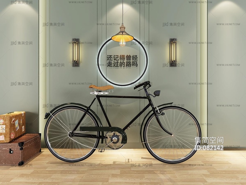 工业LOFT背景墙,皮箱,老式二八自行车 3d模型下载 [模型ID:82142]
