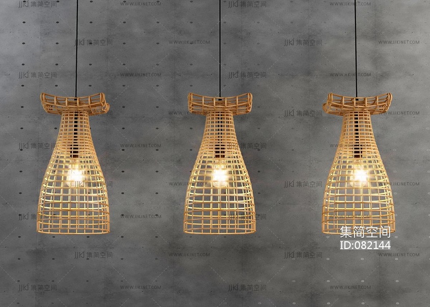东南亚日式新中式藤编编织吊灯 3d模型下载 [模型ID:82144]