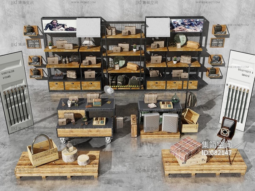 工业LOFT货柜,货架,行李箱 3d模型下载 [模型ID:82147]
