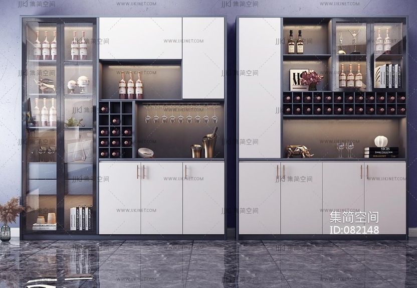 现代酒柜,红酒柜,冰桶 3d模型下载 [模型ID:82148]