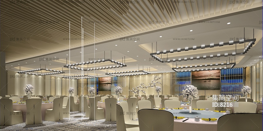 108-1022中式宴会厅 3d模型下载 [模型ID:8216]