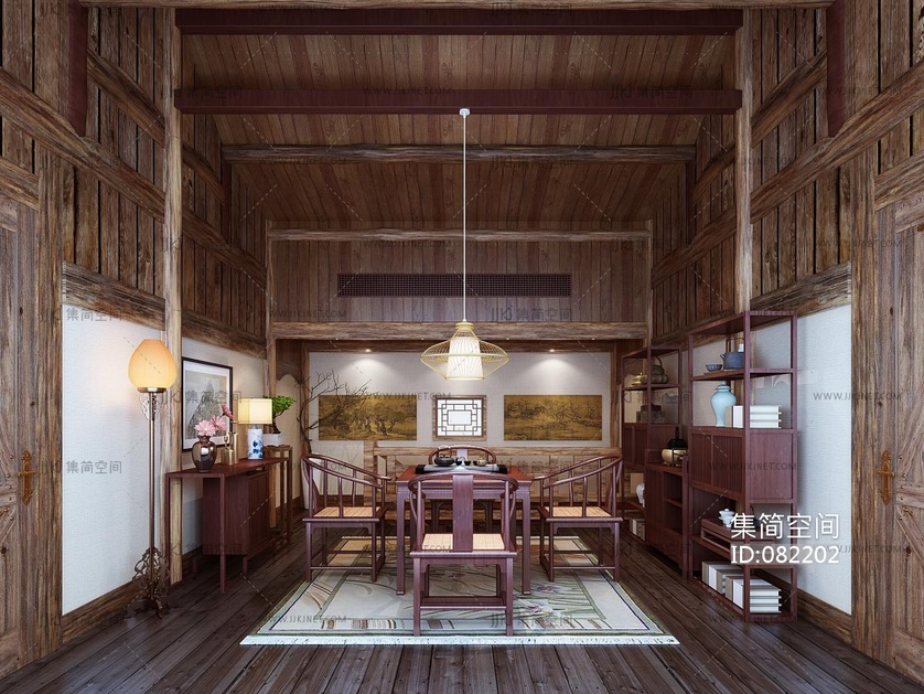 新中式茶室,八仙桌,圈椅, 3d模型下载 [模型ID:82202]