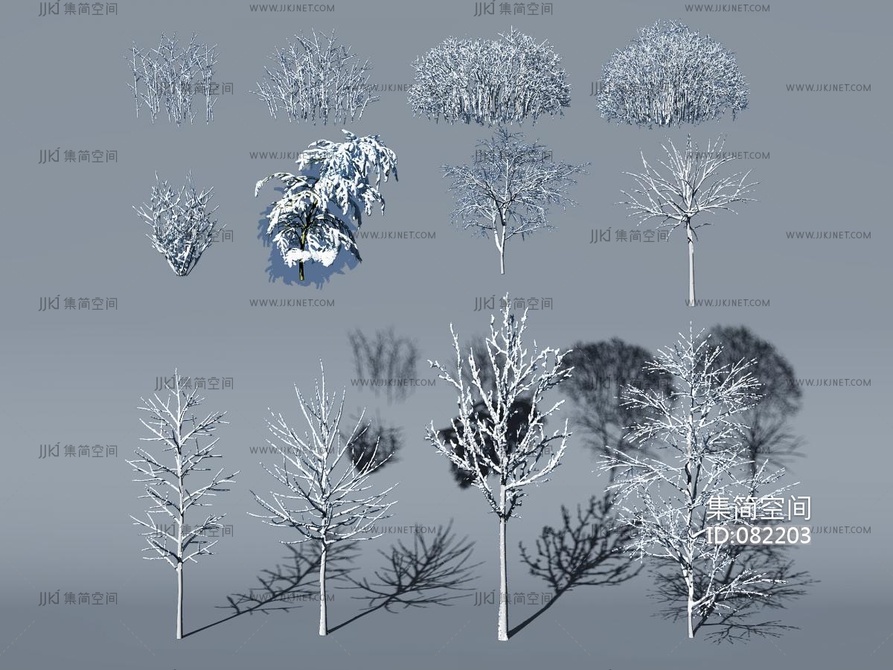 现代树,雪景冬季植物树 3d模型下载 [模型ID:82203]