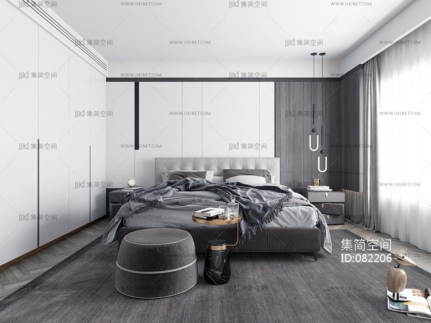 北欧现代卧室,双人床,床头柜边几 3d模型下载 [模型ID:82206]