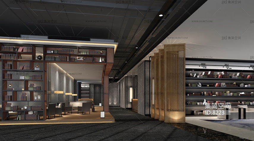 066-1022中式图书阅览室 3d模型下载 [模型ID:8223]