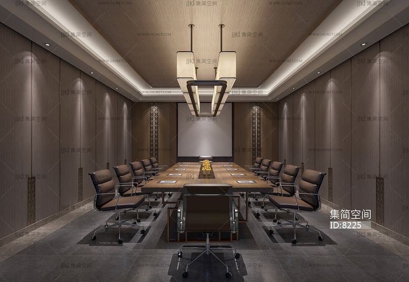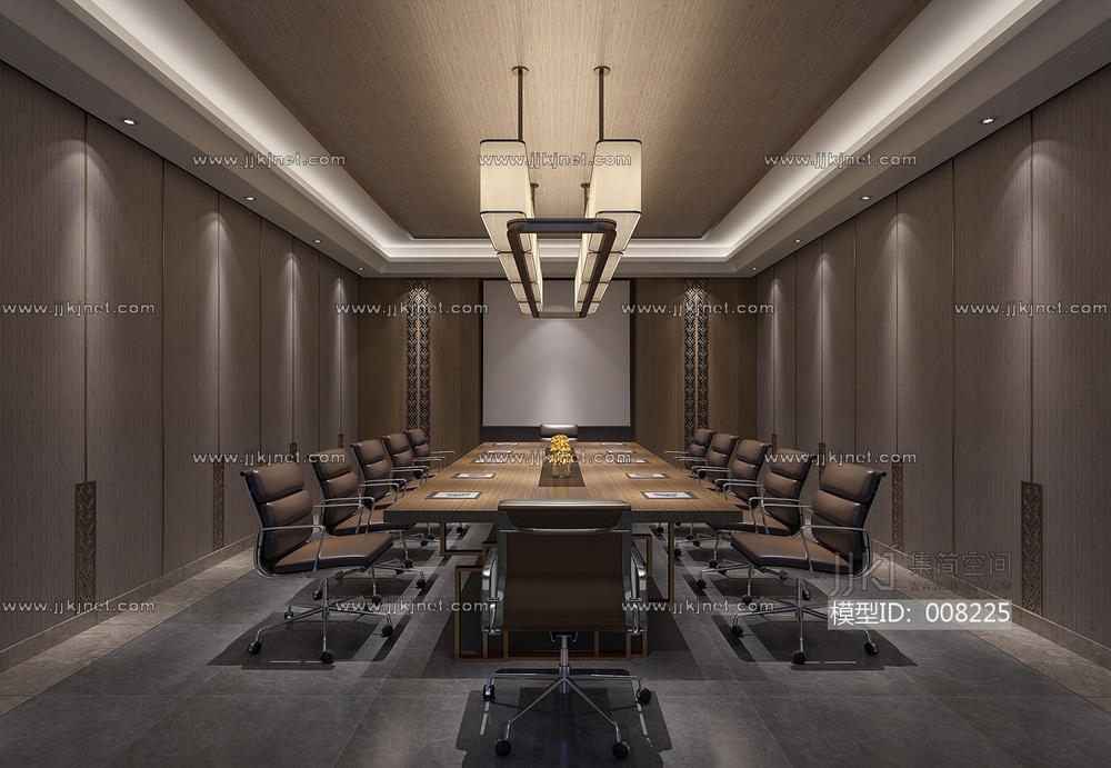 079-1022新中式会议室 3d模型下载 [模型ID:8225]