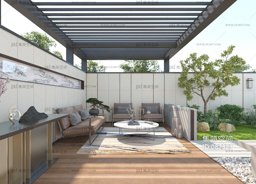 庭院阳台景观,廊架凉亭植物树 3d模型下载 [模型ID:82323]