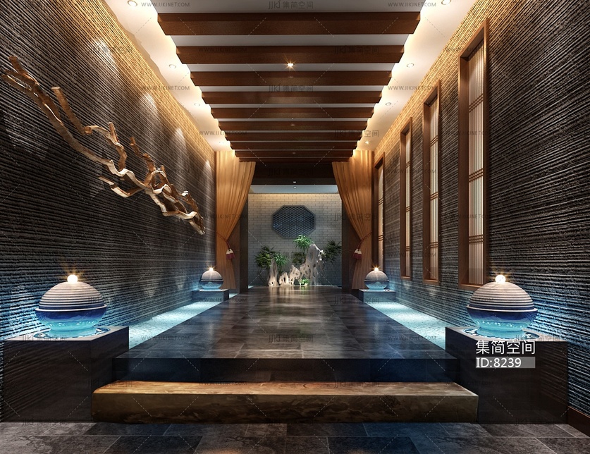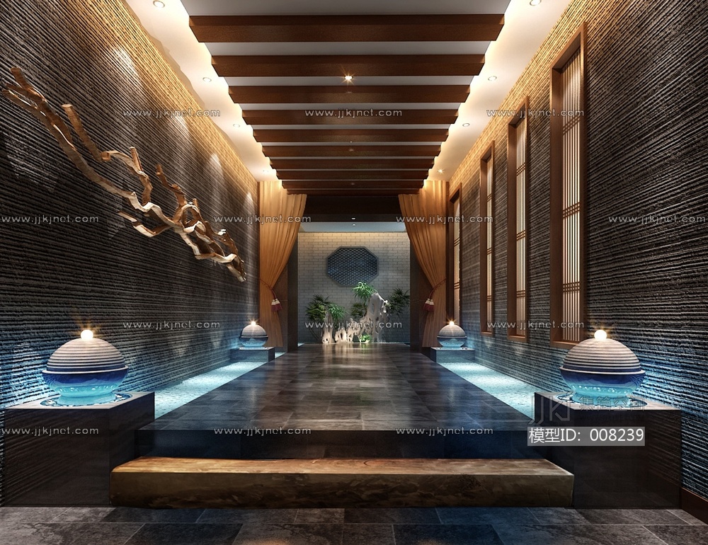 01-10-16会所走廊水景 3d模型下载 [模型ID:8239]
