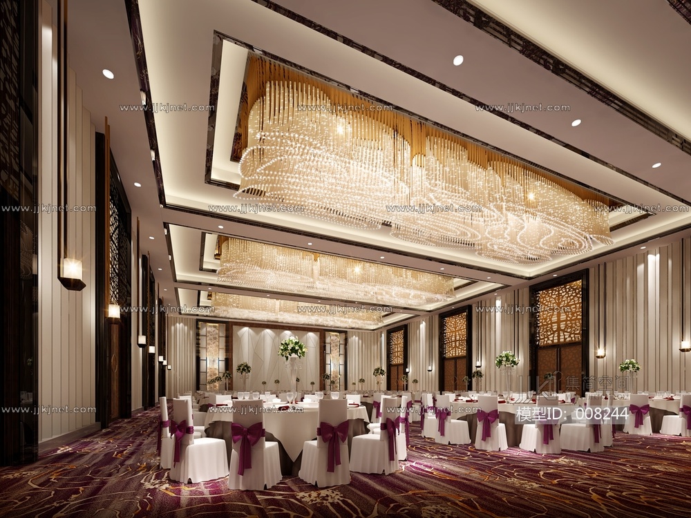 现代宴会厅宴会厅桌椅水晶吊灯3D模型3d模型下载