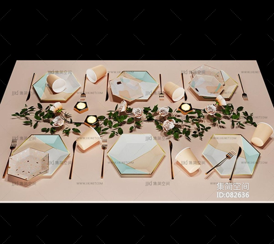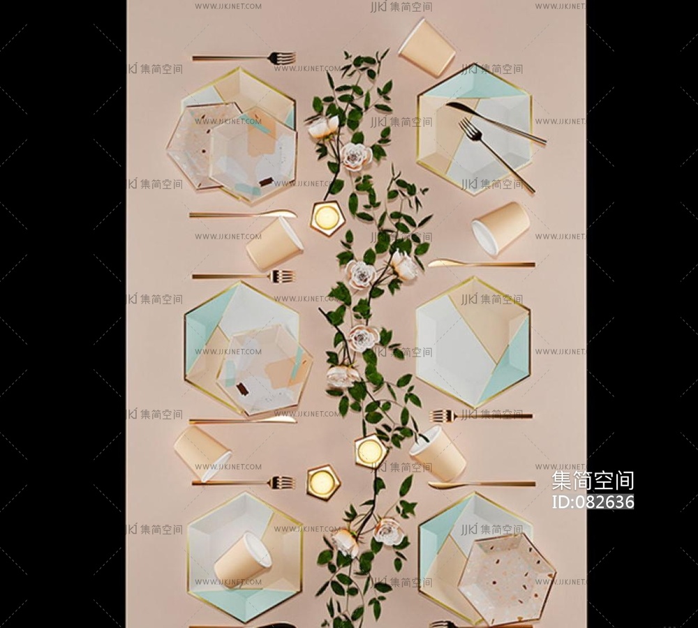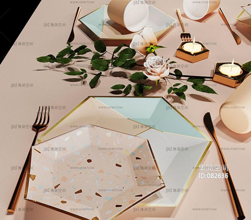 北欧现代餐具玫瑰花饰品刀叉 (1) 3d模型下载 [模型ID:82636]