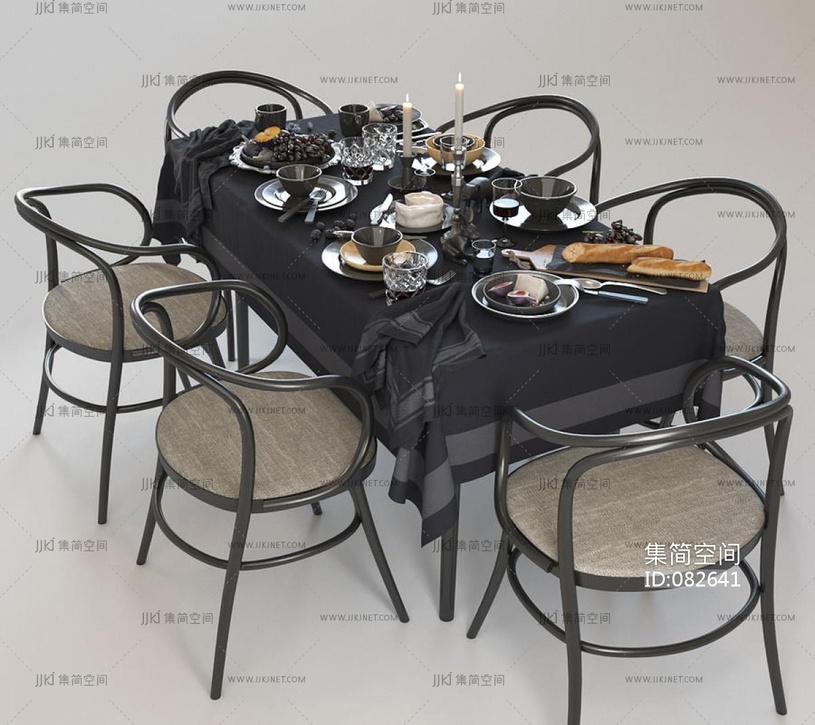 北欧现代餐桌椅,椅子餐具盘子果盘 (1) 3d模型下载 [模型ID:82641]